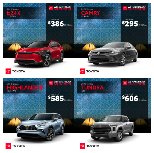 Embark on the journey of 2024 by taking the driver’s seat of a brand-new Toyota vehicle this January! Simi Valley Toyota welcomes you to explore a diverse range of options, whether you’re eyeing a Toyota sedan, SUV, or EV. The exciting part? They’re all available at the most competitive prices! Wondering why? It’s because we’re committed to helping you transition into the new year with both a fantastic ride and substantial savings. Dive into our enticing Toyota offers listed below and don’t forget to peruse our online inventory to narrow down your choices before visiting our team. We’re eager to collaborate with you – looking forward to your visit!