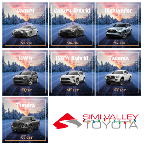 If you’re looking for a perfect present for your family member or loved one, boy do we have the right gift for you! Give a gift with a lasting impact, purchase or lease a brand-new 2022 or 2023 Toyota model from Simi Valley Toyota! We’ve got a large variety of available rides including fan favorites such as the Camry, RAV4, Tacoma, and many more! Take a look at some of our offers below and if you come across the perfect ride for you and your family, be sure to schedule a test drive online today! Then just stop by our dealership at 2380 First St, Simi Valley, CA 93065, and let a member of our friendly and experienced team take you out for a spin! We can’t wait to get you behind the wheel of a brand-new Toyota!