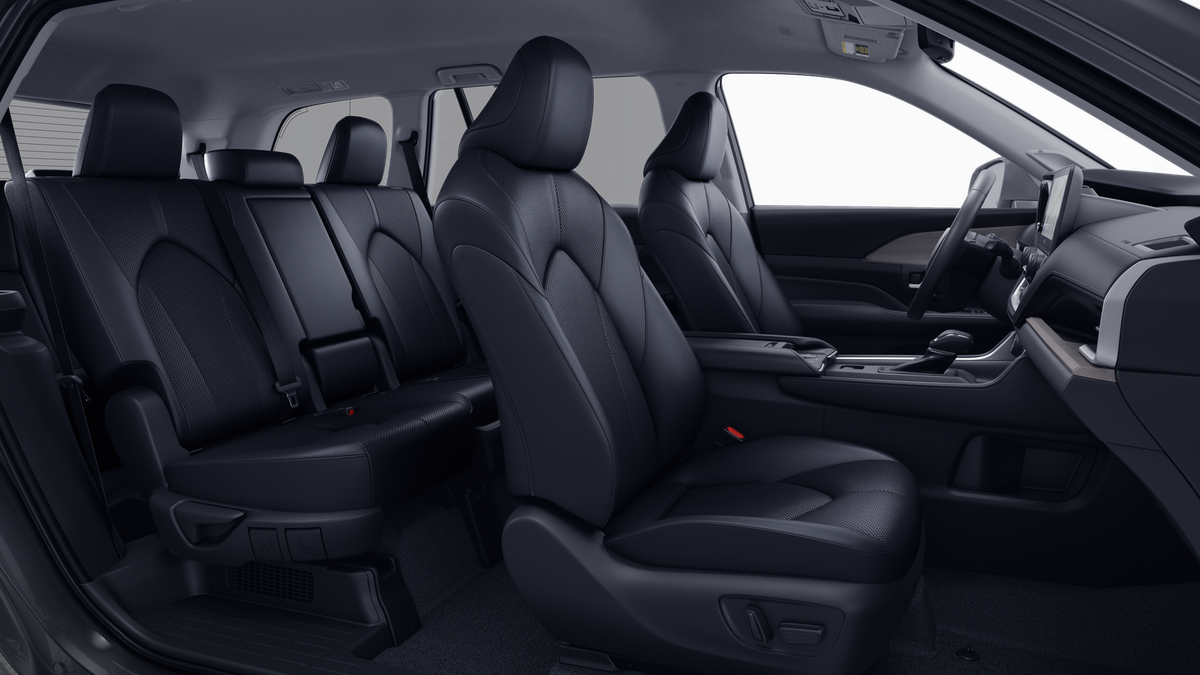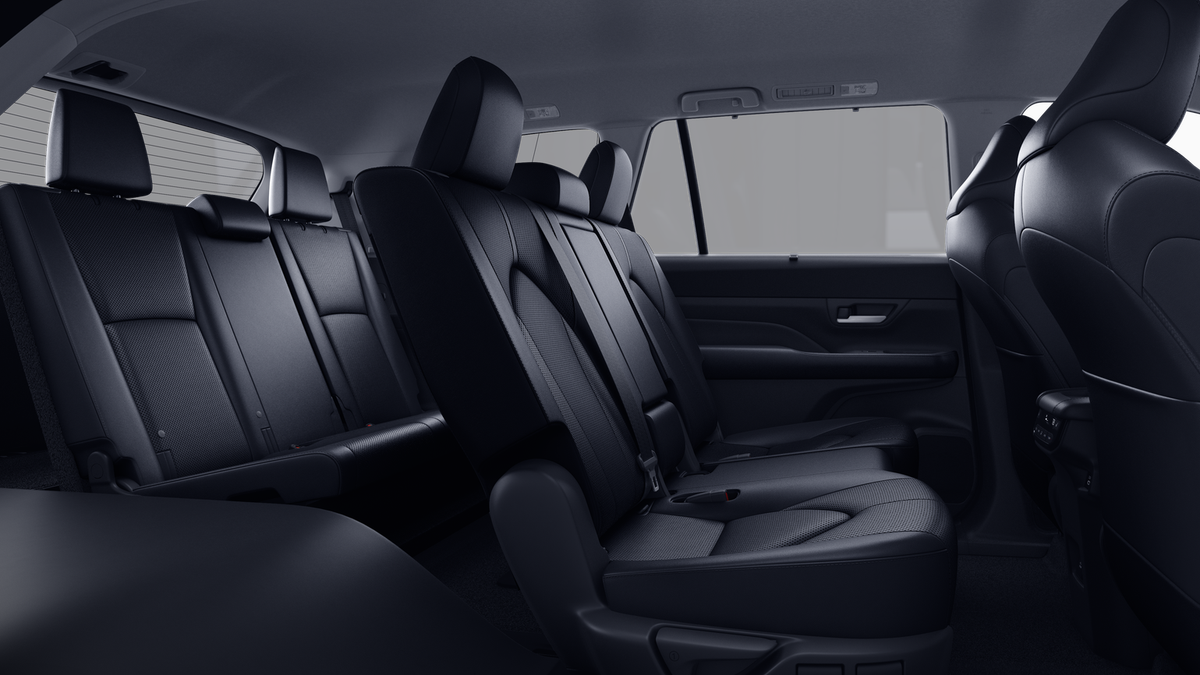 • 7-passenger seating with second-row fold-down captain's chairs and fold-down inboard armrests, adjustable headrests and two cup holders mounted on the floor; and 60/40 split, fold-down third-row seats with sliding headrests and recline function